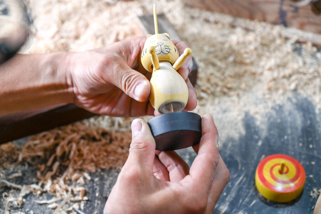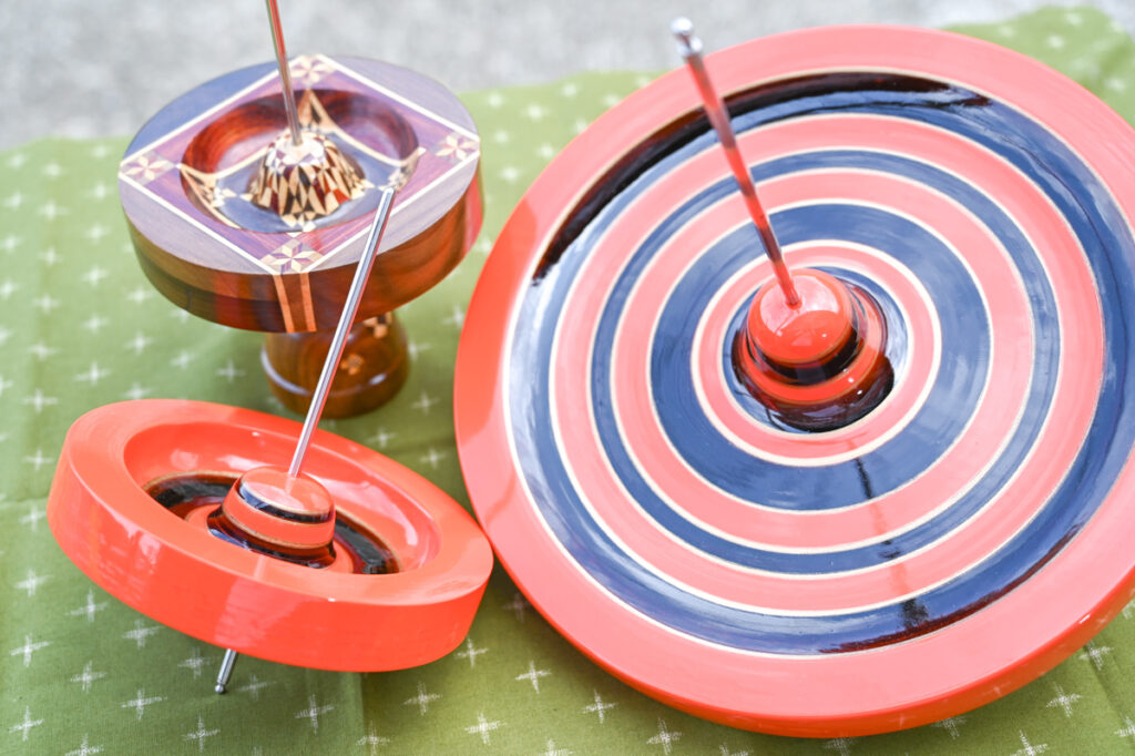 小さなお子さまが手に取って遊べるものから、大人の方にも喜ばれるからくり仕掛けの作品まで、江戸独楽ならではの魅力を大切にしながら、ひとつひとつ丁寧に手作りしています。飾って美しく、回して楽しい。工芸品としても見劣りしない、“遊んでよし、飾ってよし”の独楽を追求しています。日本古来の伝統技術を未来へつなげるために、時代に合ったデザインや様式を取り入れながら、今の暮らしに息づく独楽をお届けします。